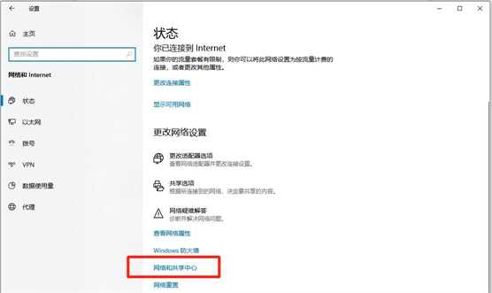 第二步:进入后拉到下方,点击【网络和共享中心】。
