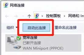 第四步:如果宽带连接是断开的,我们可以右键点击图标并选择【启动此连接】即可。