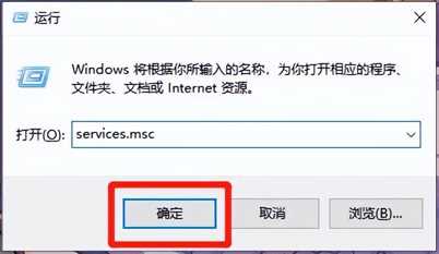 第一步:使用【Win R】组合键打开运行窗口,在窗口中输入services.msc,点击【确定】进入服务页面。