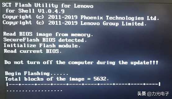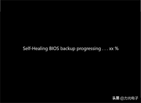 电脑自动重新启动后出现如下画面,BIOS程序进行自检备份操作,请耐心等待,当100%完成后,电脑会自动重新启动。(注:该功能在ThinkPad *90系列机型开始配备,之前机型无此功能)