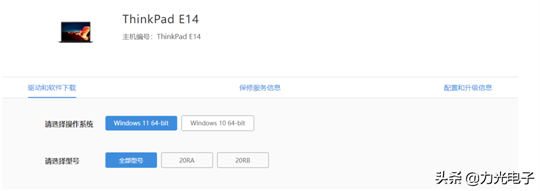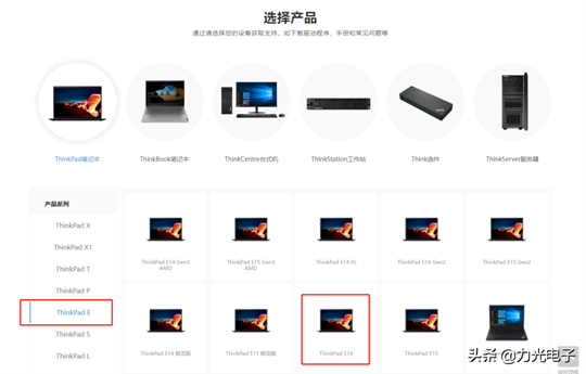 Step2:选择你的笔记本品牌&产品型号;(这里我们以ThinkPad E14为例);