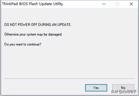 十、如确认更新操作,单击【Yes】按钮。BIOS 更新程序将自动运行。