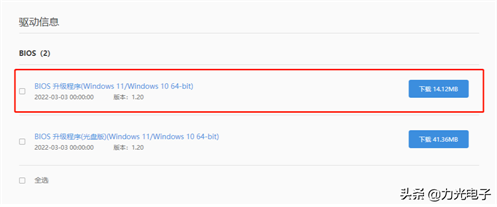 Step5:此时我们可以看到有两个BIOS版本(光盘版和非光盘版),如果Windows系统可以正常进入,建议选择非光盘版升级程序,点击【下载】即可;