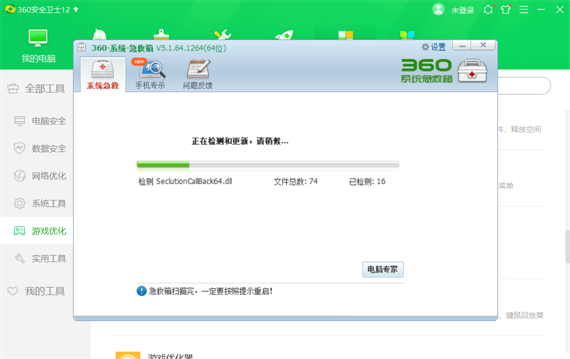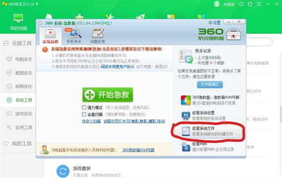 添加之后打开系统急救箱,他会自动扫描系统文件