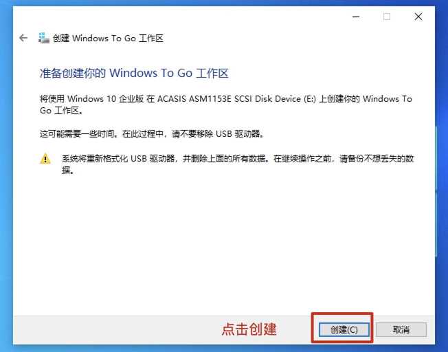 5.直接点击创建win to go的工作区(也就是把系统装到移动硬盘上)