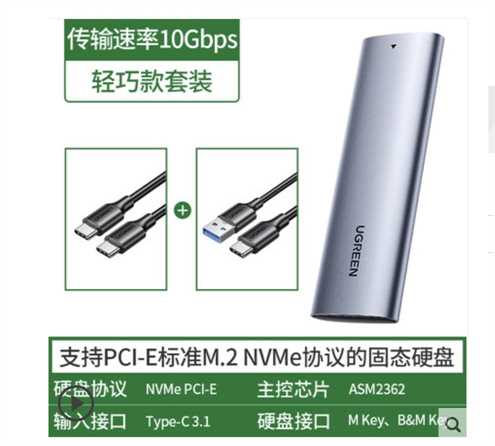 给大家推荐的是速度比较快的,type-c的接口,搭载一颗M.2的固态硬盘