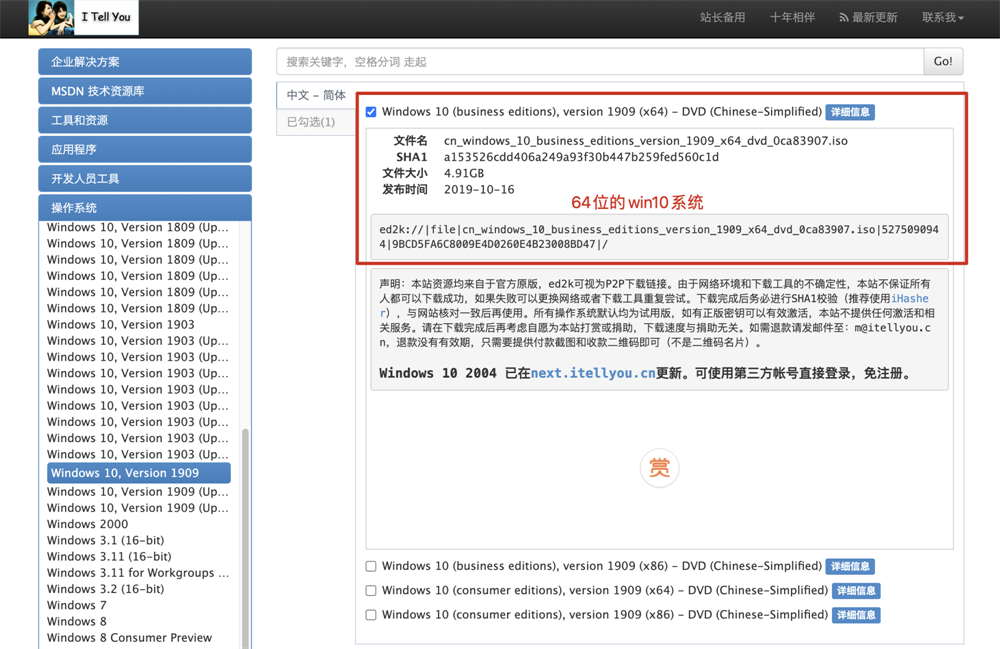 3.在提示框中找到“win 10 企业版”,一定要挂载我们之前下载的win10镜像文件,如下图: