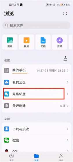 1、打开手机,然后打开文件管理,找到【网络邻居】,然后点击进入。