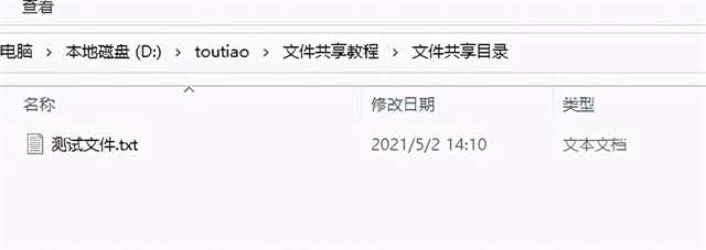 4、 这样共享文件目录就设置完成了,然后放入一个测试文件,以便后续测试。