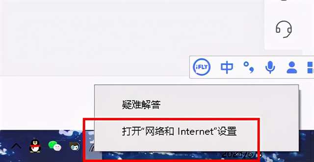 1、选中右下角的网络,点击鼠标右键,选择【网络和internet设置】。
