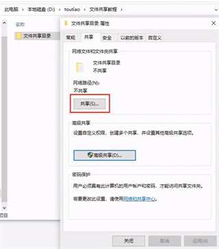 2、 选中这个文件夹,点击鼠标右键,选择【属性】—【共享】选项卡,然后点击【网络文件和工具共享】下的【共享】按钮。