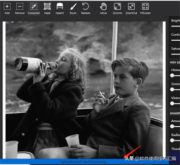 4、软件会自动将图片进行上传并进行上色,如果你对上色效果不是很满意的话,可以从右侧的选项进行微调。