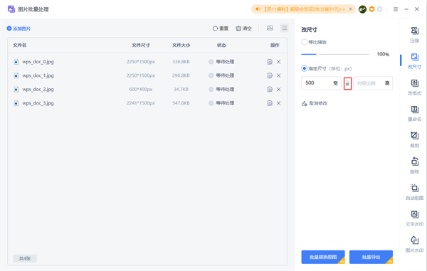 这里设置宽为500px,高为“对应比例”高,这里的“对应比例”是默认自动显示的,不需要手动输入。“对应比例”是指不改变图片原来的宽高比,作用是防止图片变形影响美观。