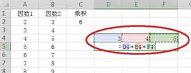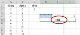 1、首先我们点击放入乘积的单元格,然后输入“=”号,然后点击一个“因数”,这时“因数”单元格出现虚框了,乘积的单元格中就出现了单元编号,如图所示;