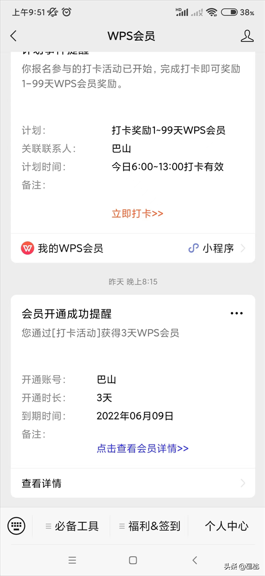 3.曾经是付费会员获得的集分兑换。但这个是需要先花钱的。通过充值,WPS会给用户一定的集分,而累积的积分可以兑换会员。
