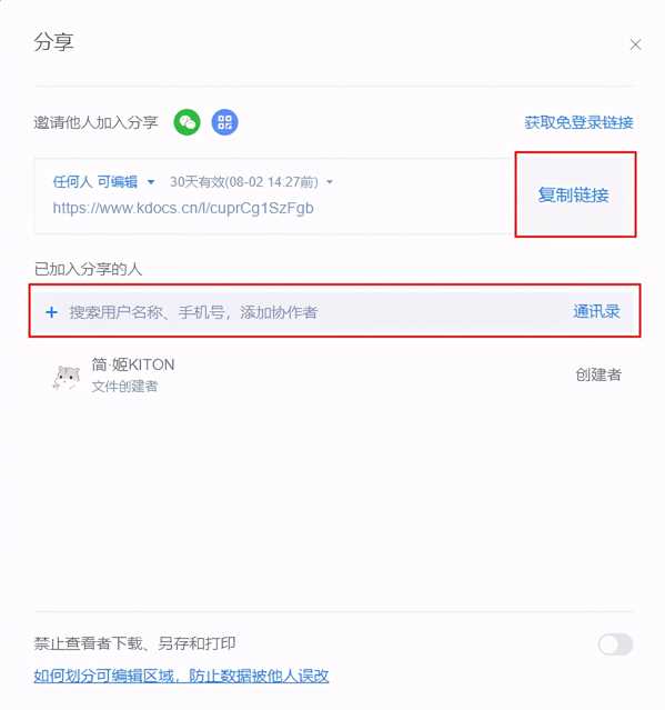 点击创建并分享,将分享链接发给成员,成员收到链接后点击进入,就可以协作编辑同一文档啦。