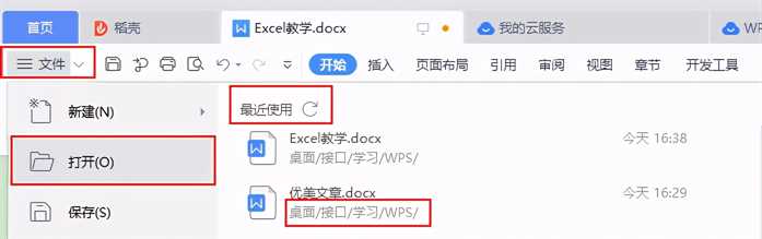 可以在“云文档”-“最近”查看最近使用或保存的文件,在文件下方可显示文件路径。