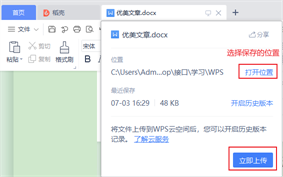 点击“上传到云”,选择“我的云文档”,即可将文件快速保存。