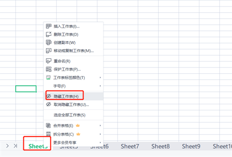 隐藏:隐藏工作表(功能区命令,右键命令)
