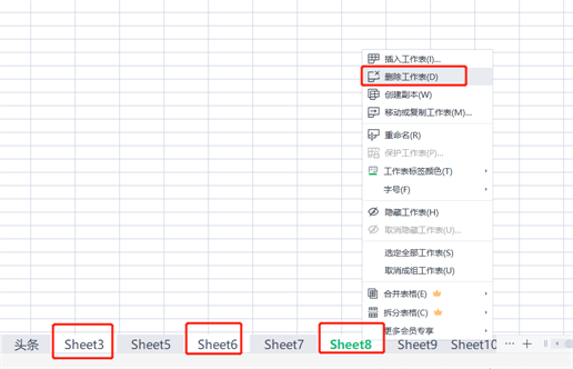 可以同时删除多张工作表(可以使用shift或者Ctrl选择工作表)