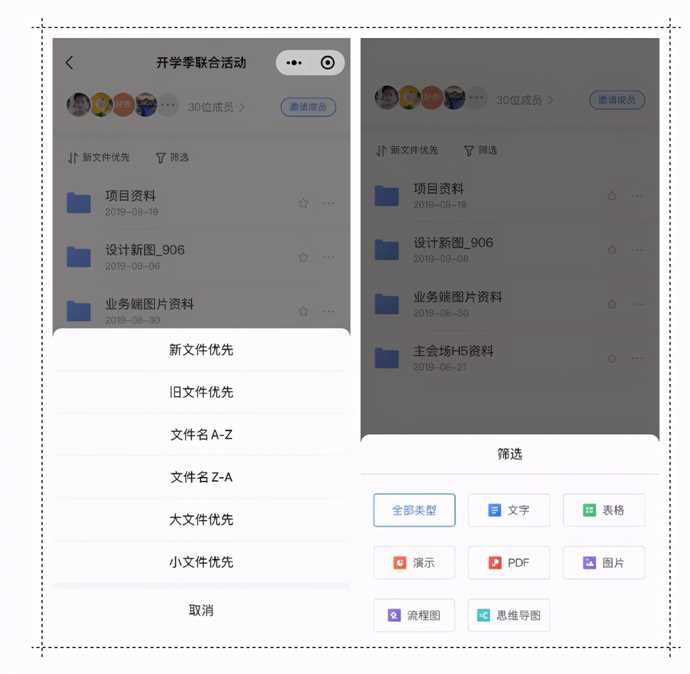 2,文件查找、整理更为方便。传统的微信群找文件方法,需要不断翻聊天记录,十分麻烦。而在 WPS 微信群文件夹中,文件自动汇总,并且还可通过 6 种排序方式、7种文件类型筛选,快速找到文件。同时还能直接重命名,方便文件整理。