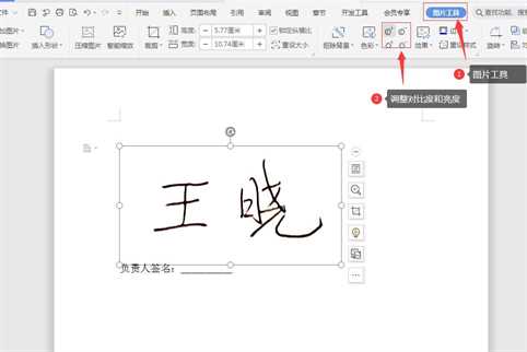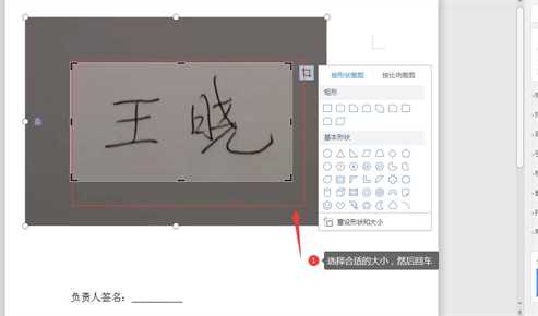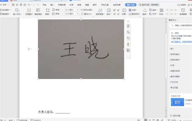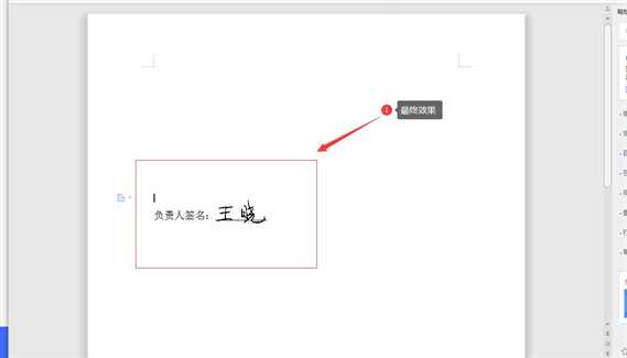 5、最后在适当调整签名的大小和位置,这样,我们看到,负责人签名手写效果就制作完毕了。
