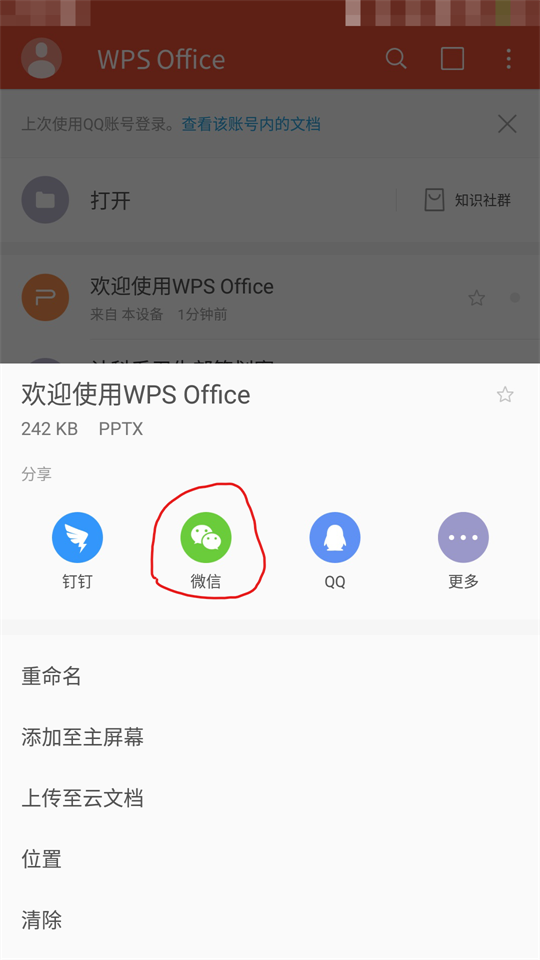 最佳答案1、打开WPS2、长按需要发送的文件,会弹出如下窗口。3、我们再点击需要发送的平台,我们以微信为例子:4、弹出窗口,我们点击“以文件形式发送”,再选择需要发送的群组和联系人就行了:......