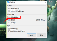 系统会自动弹出一个压缩图片窗口,我们在更改分辨率下面点选网页/屏幕,其他不变,直接点击确定即可,如下图所示: