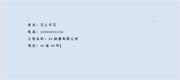 四、最后单击确定,返回页面,这时候我们发现名片格式已经制作完成了。接下来的字体和颜色都可以根据自身需要自行调整。