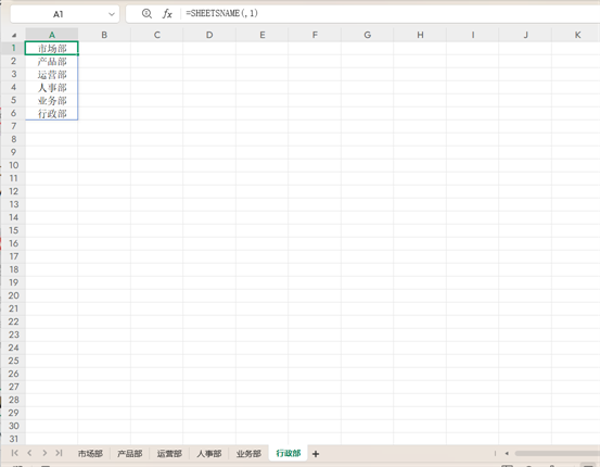 SHEETSNAME函数是WPS表格专门设计的函数,它的主要作用就是快速获取当前工作簿里的工作表名称。有了它,我们不用再手动去底部标签栏查找工作表名称,也不用一个个输入,只需写个简单的公式,就能得到想要的工作表名称,让表格操作效率大大提高。