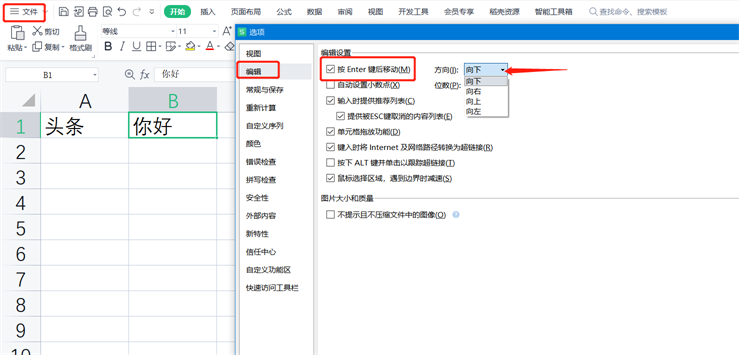 更改快捷键操作:文件——选项——点击编辑,可以看到Enter键的设置。改完之后点击确定即可。