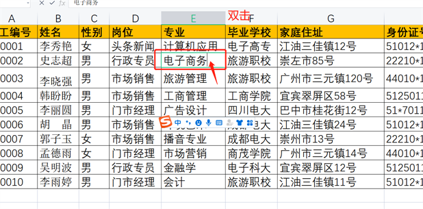 部分修改:进入编辑状态(有编辑框,光标闪动)(双击、按F2键、