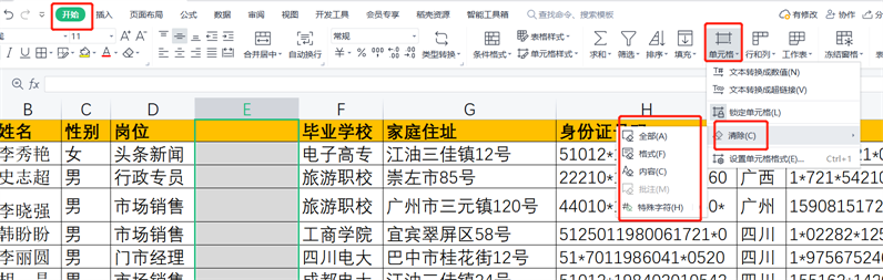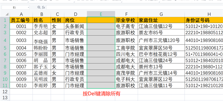 选中单元格(也可以是多个单元格),直接按del键就可以了。(全部清除)