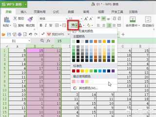 将鼠标移动到行号(1,2,3……)或列号(A,B,C……)上时,就会变成向右或向下的箭头,这时单击鼠标左键,可以选中整行或整列的单元格。接着在油漆桶按钮下点击一种颜色,可以修改整行或整列的颜色。