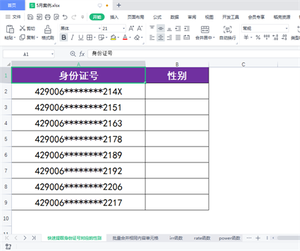 5 将B2单元格中的公式向下填充,可以快速得到所有身份证号对应的性别。