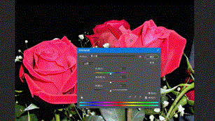 注意:像我们这个案例中,花的颜色是红色的,我们在左上角进行选择时要分别调整红和洋红两个都包含红色的通道,才能完成对花朵色彩的更换。