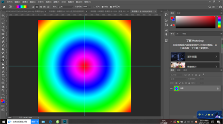 首先我们新建的一个800*800像素,分辨率为72的白色画布。建两个水平竖直的参考线,给背景图层拉一个很好的渐变,我这里渐变选择径向渐变,从参考线交点想任意一侧拉一条渐变。如图1所示。
