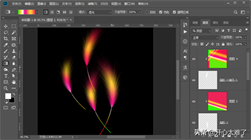 按“Ctrl+J”复制几个羽毛,调整大小、角度和位置,同样在羽毛图层上方新建空白图层,创建剪贴蒙版,填充不同的渐变颜色。这样,好看的羽毛就制作完成了。