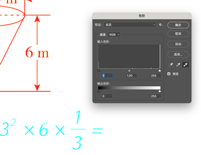 去掉水印后的图片还残留蓝色答案部分,如果还是采用色阶调整的方法,看看是什么效果?