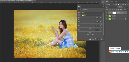 只这一步基本上就达到了效果,但是这里的问题是人物脸部的肤色也会跟着偏,必须到HSL中稍作调整。