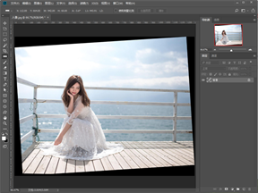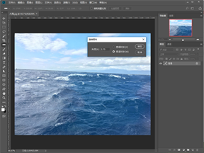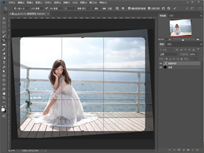 3.旋转后的图片,其地平线已经处于水平状态了,但图片本身却倾斜了,这时旋转裁切工具,简单裁切一下即可,可在其属性栏上选择“宽x高x分辨率”,输入具体像素值即可。