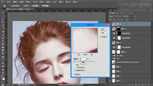 27、【Ctrl+I】蒙版反向,使用【画笔工具】对头发进行涂抹。