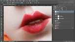 13、【Ctrl+shift+N】新建图层,使用【画笔工具】为嘴唇内部添加暗红色。