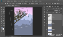 执行“Ctrl+T”自由变换,调整树的大小和形态。